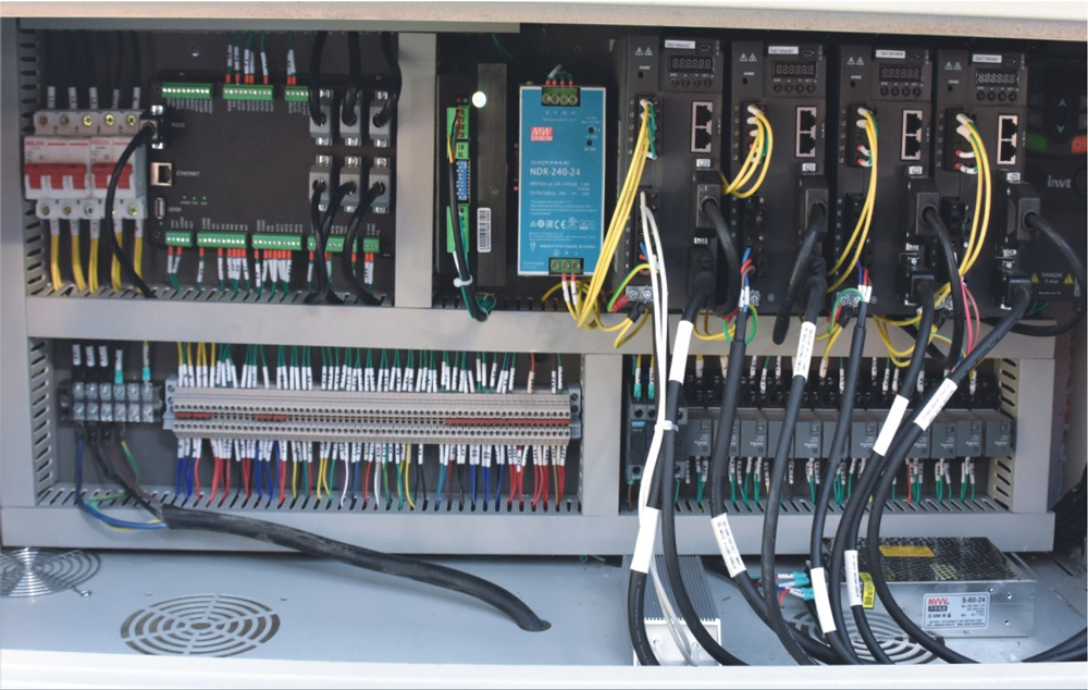 8、電氣系統:整機采用全伺服運動控制,各種電氣元件、檢測開關均采用日本、臺灣、法國、德國等公司產品。