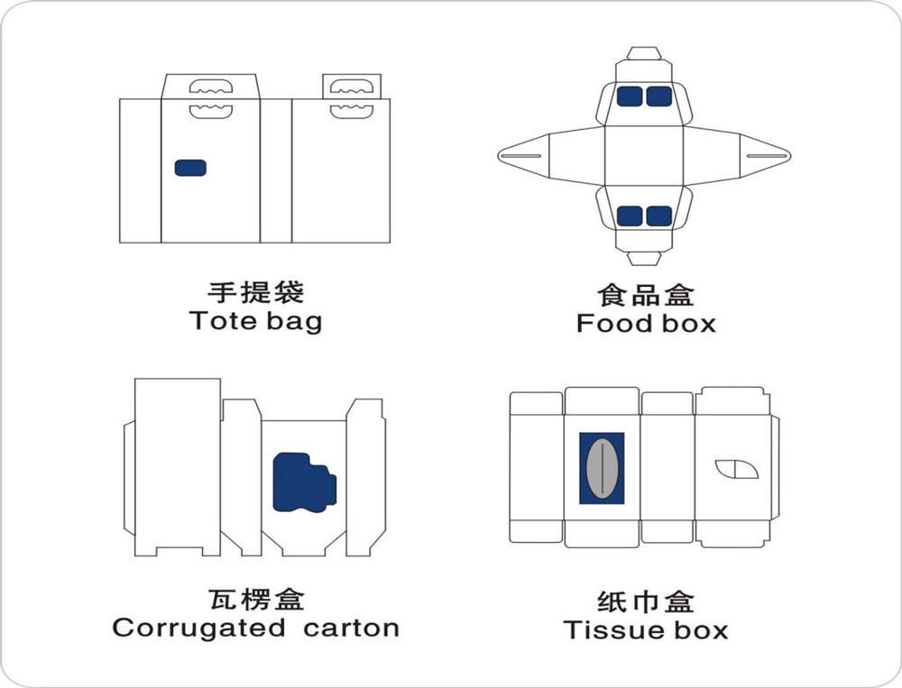適用于紙巾盒,化妝盒、禮品盒、服裝盒、玩具盒等開窗紙盒的窗口自動貼膜,瓦楞紙同樣適用,異形紙盒也好操作。